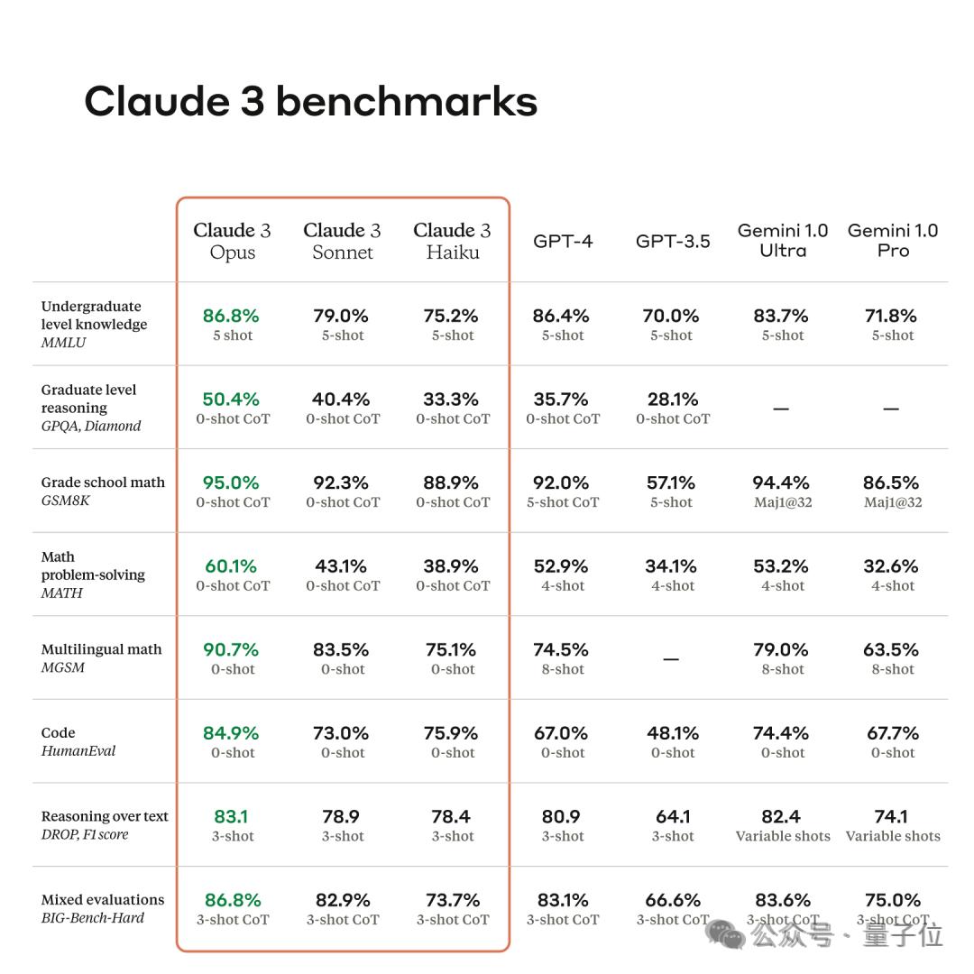 除了Claude 3,我们再看看其他表现亮眼的选手。
